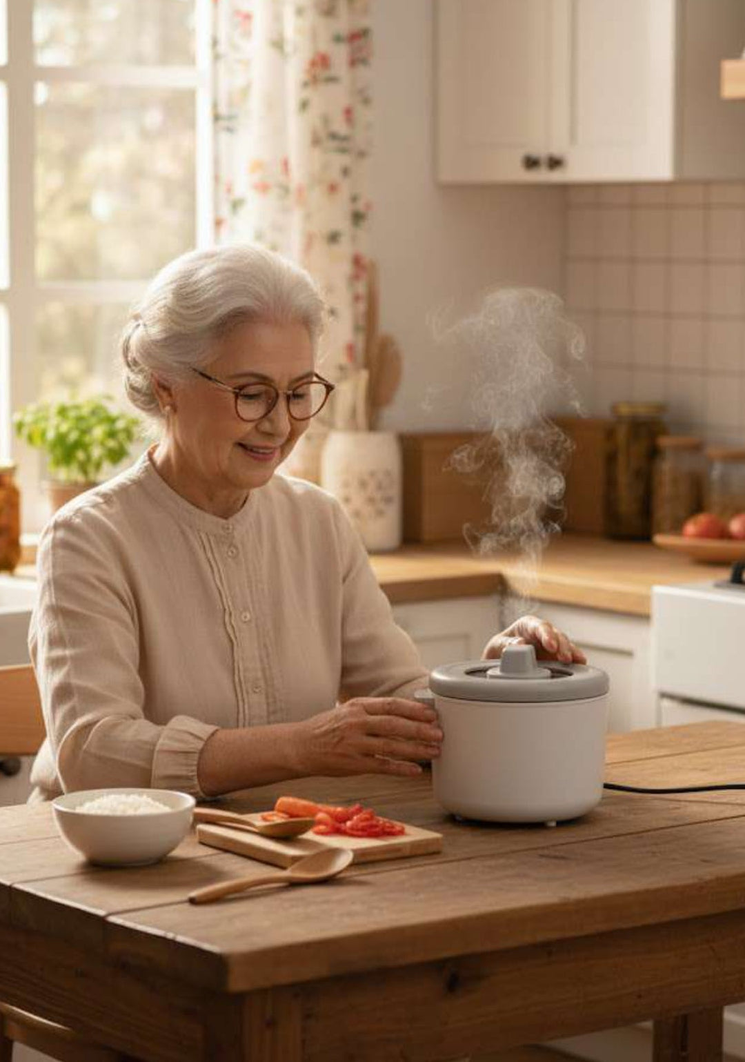 Mini Cooker-ul Portabil este proiectat cu gândul la simplitate, fiind ideal pentru persoanele în vârstă